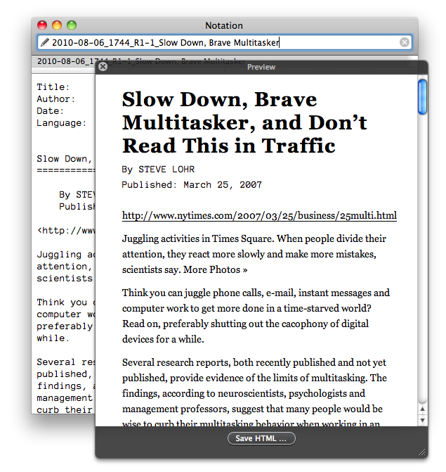 Back in 2010, I forked Notational Velocity to enable preview rendering modes for MultiMarkdown, Markdown and Textile.